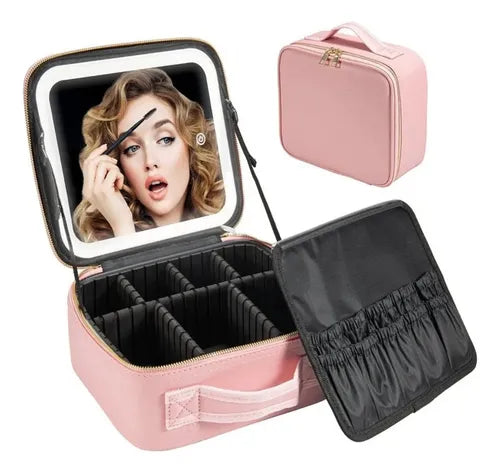 Ahorra un 50%ESTUCHE ORGANIZADOR DE MAQUILLAJE CON ESPEJO LED